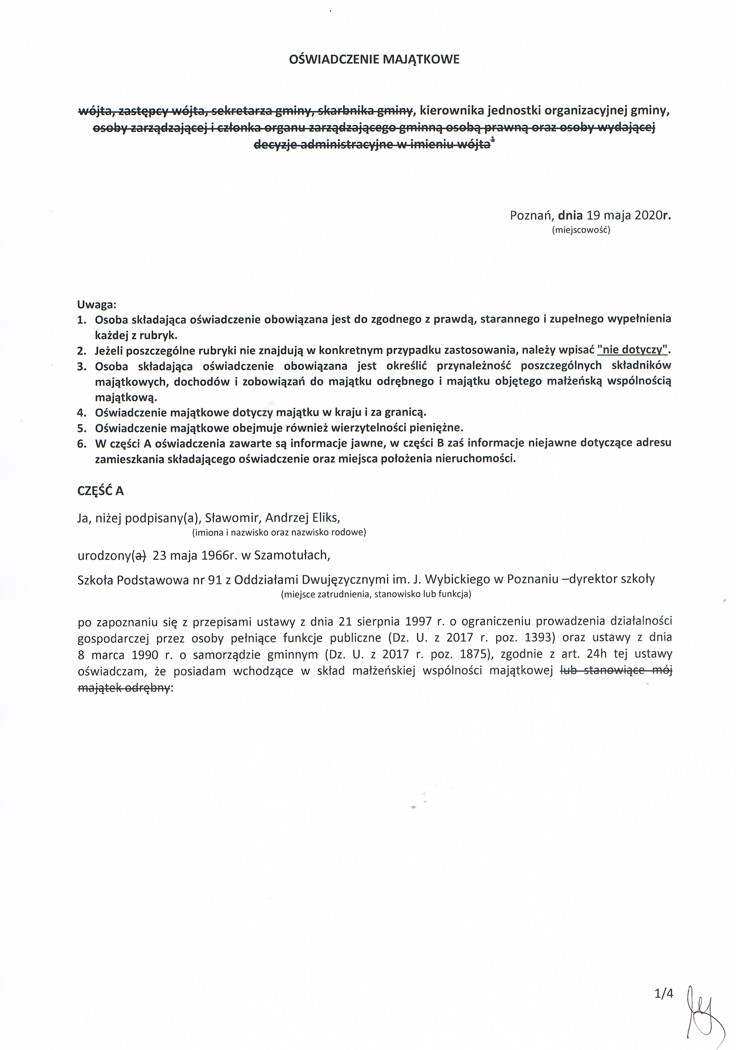 Oświadczenia majątkowe wg wydziałów - Szkoła Podstawowa nr 91 z Oddziałami Dwujęzycznymi im Józefa Wybickiego