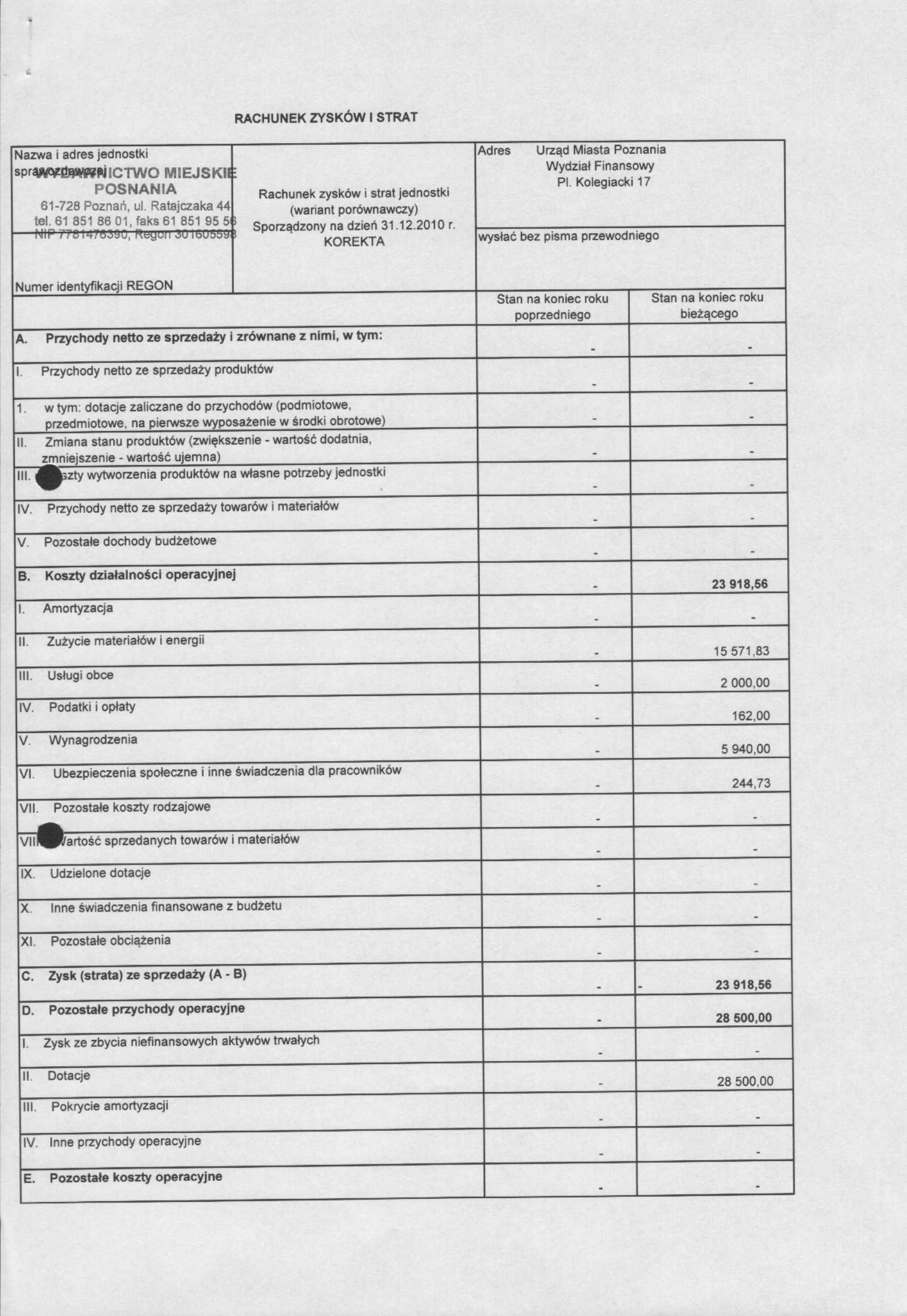 w sprawie zatwierdzenia rocznego sprawozdania finansowego za 2010 rok Wydawnictwa Miejskiego Posnania.